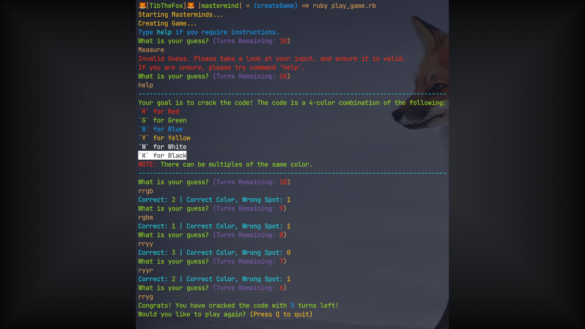 A small code-breaker game famously called 'Mastermind'. A lightweight terminal-based version meant for quick games. An automatic Solver is included with instructions, with benchmark performance updated in README over time.