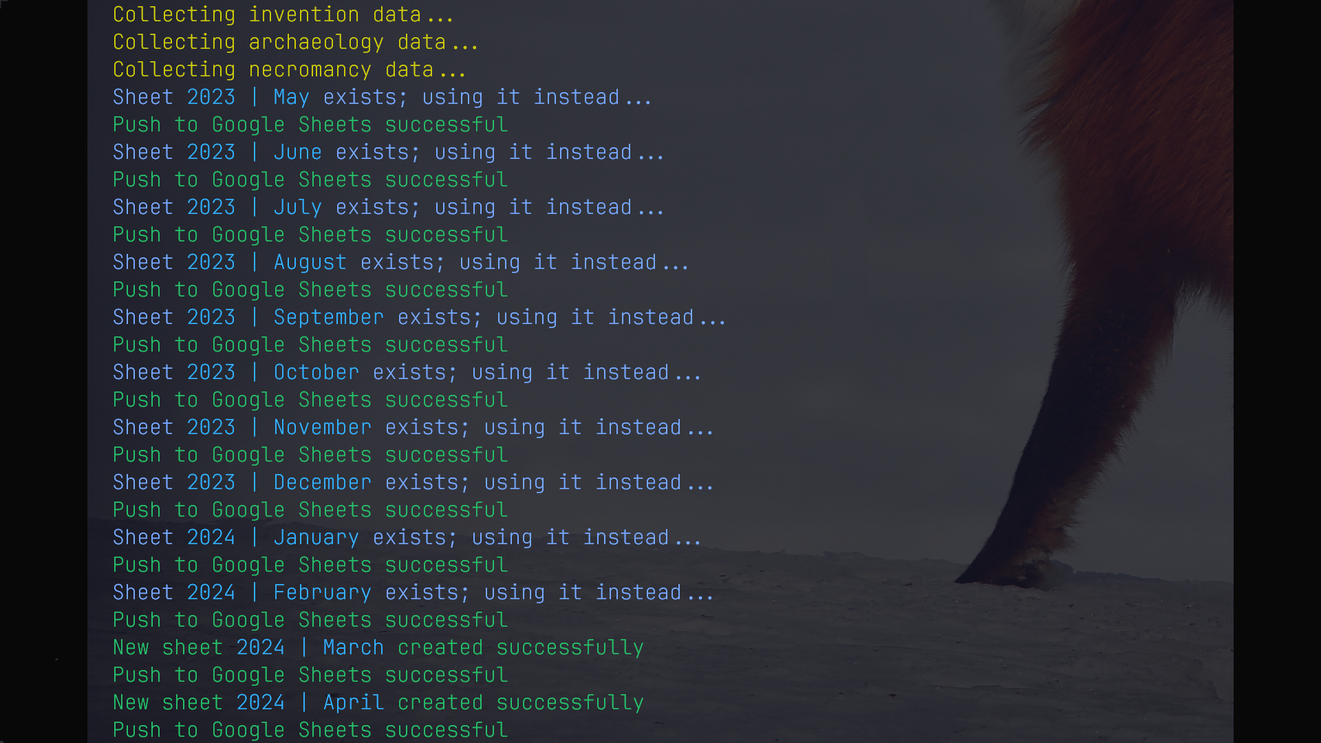 Helpful scripts for viewing player data and/or pushing to Google Sheets